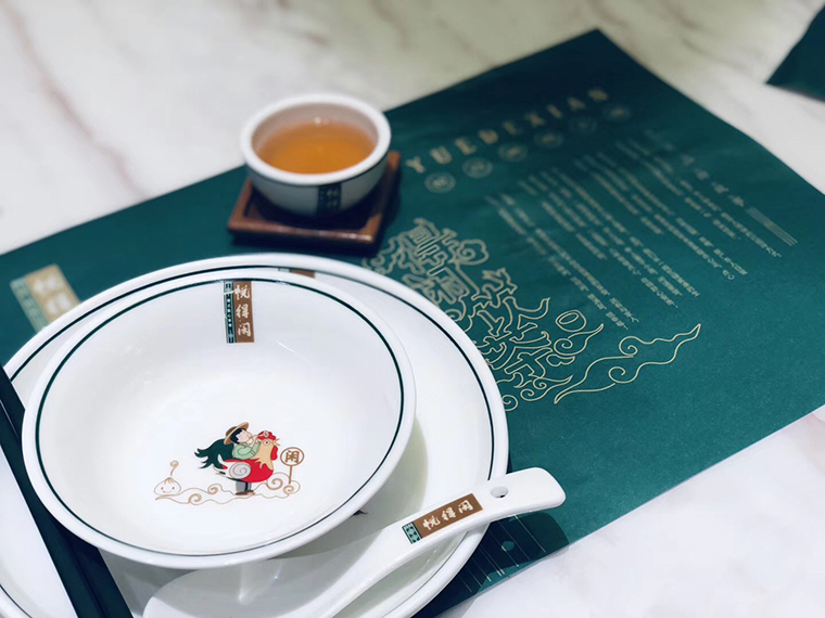 平面物料及廣告應用方面,品深餐飲設計團隊力圖整體空間與品牌完整統一,精細到連顧客接觸最多的墊餐紙、點餐單、使用的功夫茶具、員工的工衣胸牌、圖片的風格,全部統一在悅得閑文化體系之內,給顧客以視覺整齊劃一又靚麗多變的美學感受。