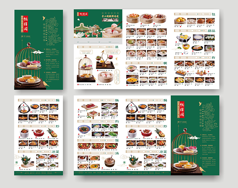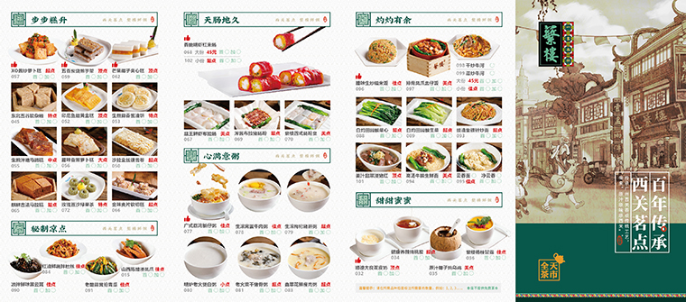 菜單價(jià)格避免使用常規(guī)排版版式,盡量弱化代替,將價(jià)格數(shù)字縮小,金錢標(biāo)志¥20簡(jiǎn)化為20.價(jià)格后面標(biāo)明菜品的單位。價(jià)格代替,例如品深設(shè)計(jì)做的悅得閑、寶粵樓、蘩樓等廣式點(diǎn)心的菜單,都不放價(jià)格,用小點(diǎn)、大點(diǎn)、中點(diǎn)、特點(diǎn)、頂點(diǎn)、超點(diǎn)、精點(diǎn)、佳點(diǎn)、優(yōu)點(diǎn)來代替。在底部統(tǒng)一將小點(diǎn)、大點(diǎn)、中點(diǎn)、特點(diǎn)、頂點(diǎn)、超點(diǎn)、精點(diǎn)、佳點(diǎn)、優(yōu)點(diǎn)標(biāo)上價(jià)格。菜品與價(jià)格隔離就會(huì)減少價(jià)格對(duì)顧客的影響,不經(jīng)意間放大了顧客的消費(fèi)金額。