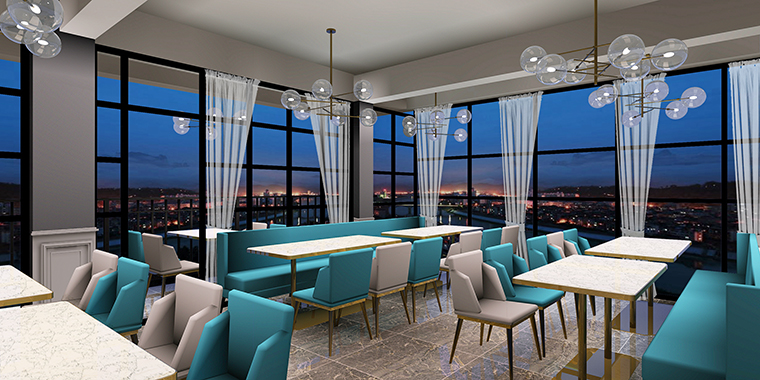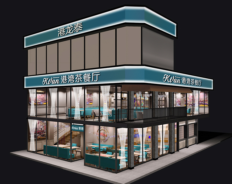 港灣茶餐廳空間裝飾裝修設(shè)計(jì)圍繞“時(shí)尚、休閑、放松”為設(shè)計(jì)哲學(xué),將原來餐廳建筑物的外墻全部打掉,形成大面積落地幕墻玻璃,視覺通透,明亮純凈,周邊路過的顧客紛紛駐足停留,拍照打卡。