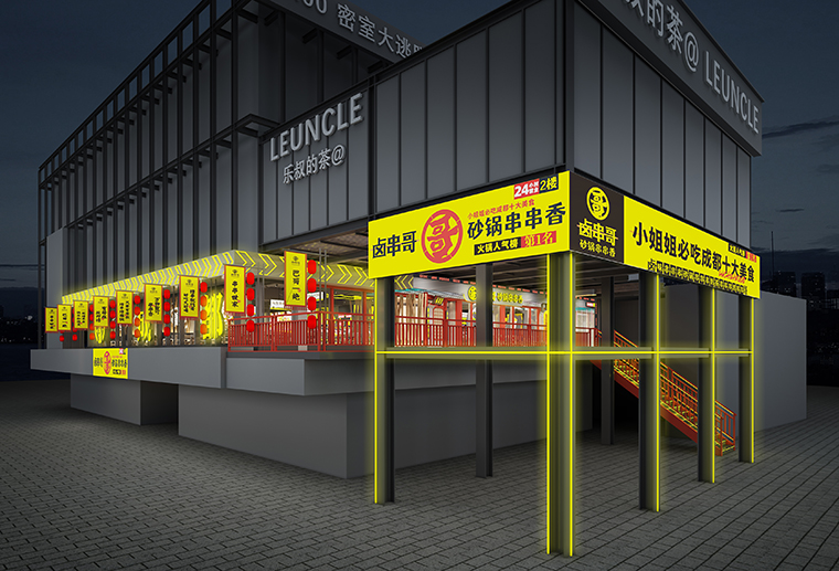 1、鹵串哥砂鍋串串香首次進入深圳市場,如何通過空間裝飾裝修設計的用餐體驗環境來表現串串香火鍋與其他火鍋、其他餐飲品類不同的市井氣,煙火氣?