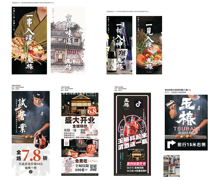 品牌記憶點:日本京都風格門頭設計+玉椿標識及家徽+燒鳥手繪畫面+四大主色調。